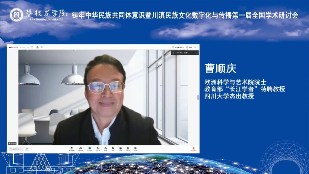 中央民族大学荣誉资深教授戴庆厦、欧洲科学与艺术院院士、教育部“长江学者”特聘教授曹顺庆通过线上方式致辞。戴庆厦指出,本次研讨会选题精准、意义深远,是时代需求和学者责任的结合,期待以数字化手段架起文化桥梁,以扎根田野、跨界融合、培育新人的实践,为铸牢中华民族共同体意识注入持久力量。曹顺庆强调,川滇地区地处藏羌彝走廊与南方丝绸之路核心腹地,多元共生的文化生态是铸牢中华民族共同体意识的深厚根基,数字技术为民族文化传承创新带来新机遇,本次研讨会将为推动构建民族文化自主知识体系,响应文化强国战略需求做出重要探索。
